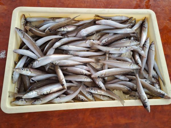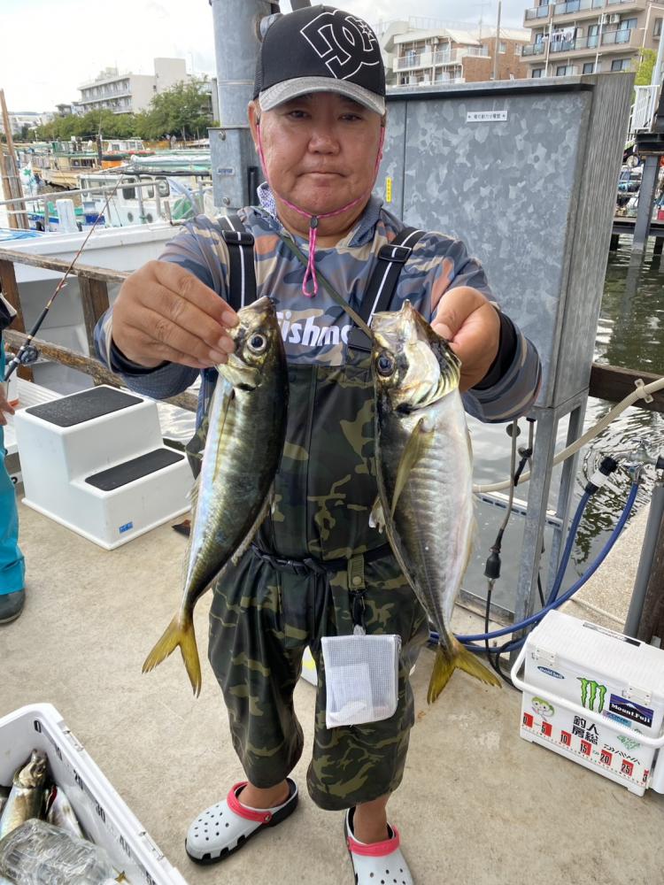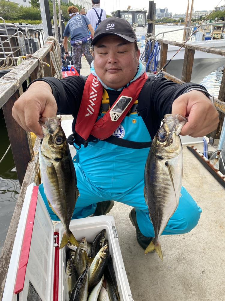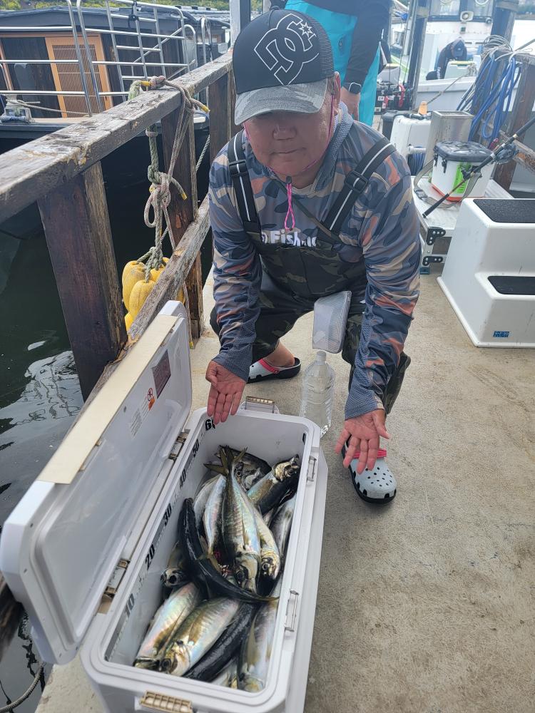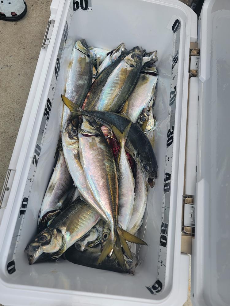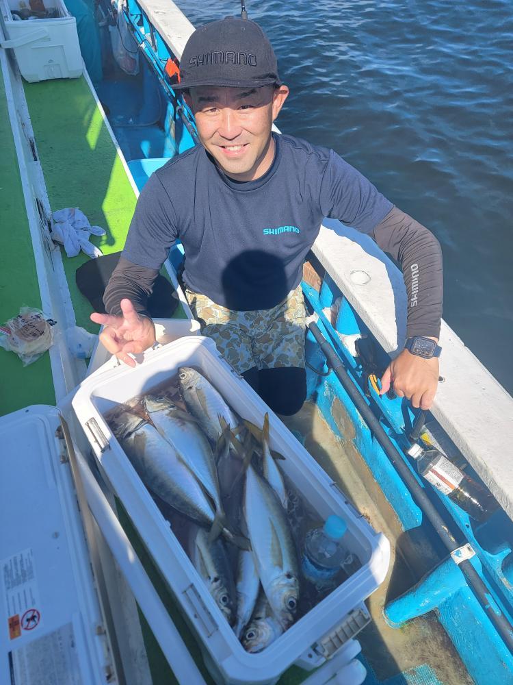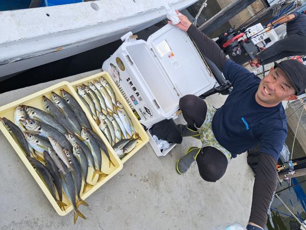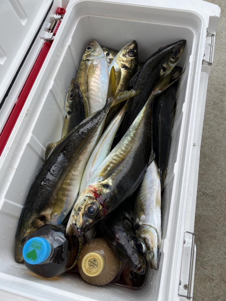 ショートビシアジ乗合に出船しました。出船時は波風ありましたが、ポイント近くは風影となり問題ない天候でスタート。特大サイズがポツリポツリとヒットも次第に潮が流れなくなり小振りのみに。風も凪ぎて来たので転々と探し、後半は高活性な群れ見つかり中型主体にラッキーな方は特大も混じってお土産いっぱいになりました。