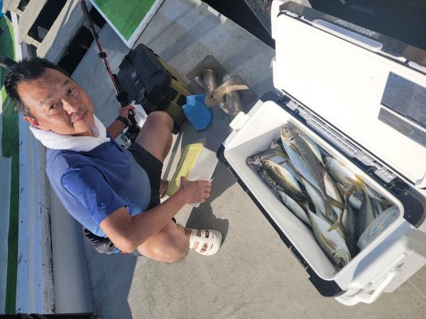 ショートビシアジ乗合に出船しました。今日も潮が速かったですが、中型主体に順調なアタリが出せる時間がありお土産は確保出来ました。ラッキーな方は大型もゲット。