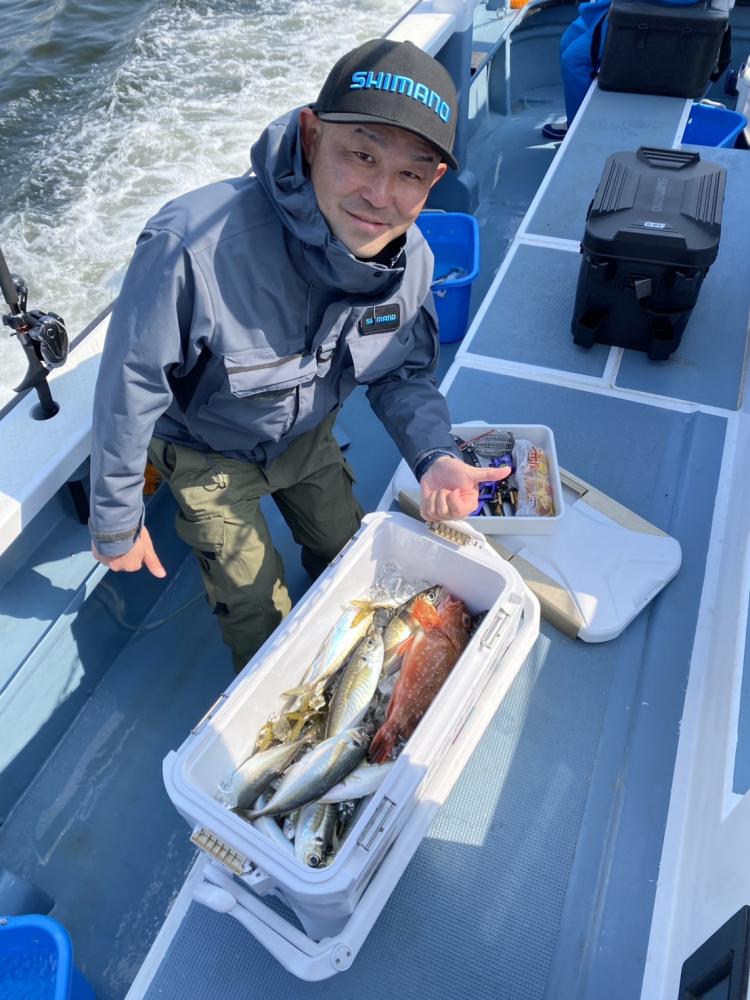 外道に良型のマサバ多数、マダイ、クロダイ、カサゴ、ホウボウが混じりました。