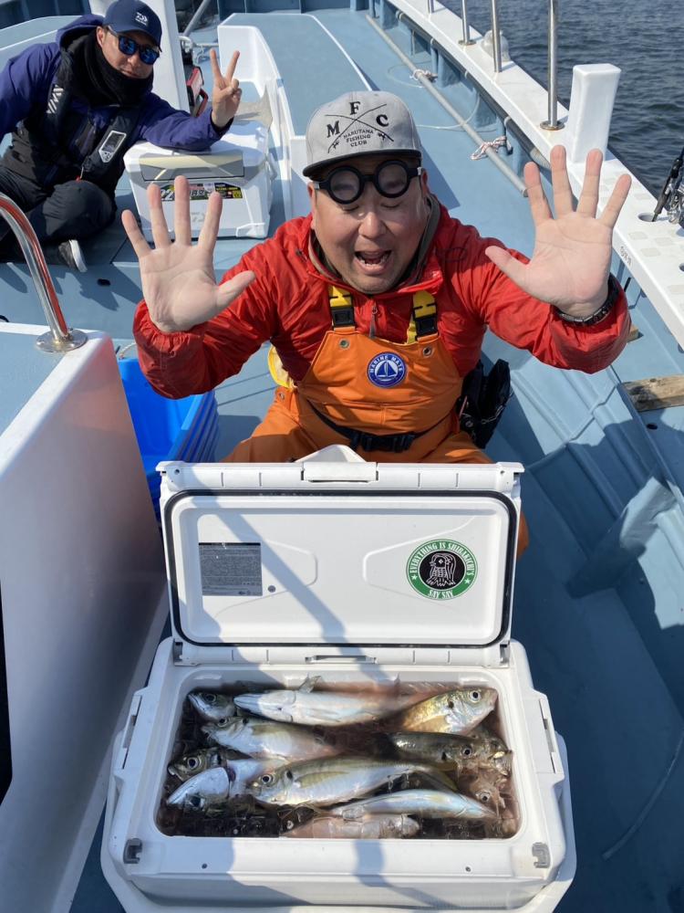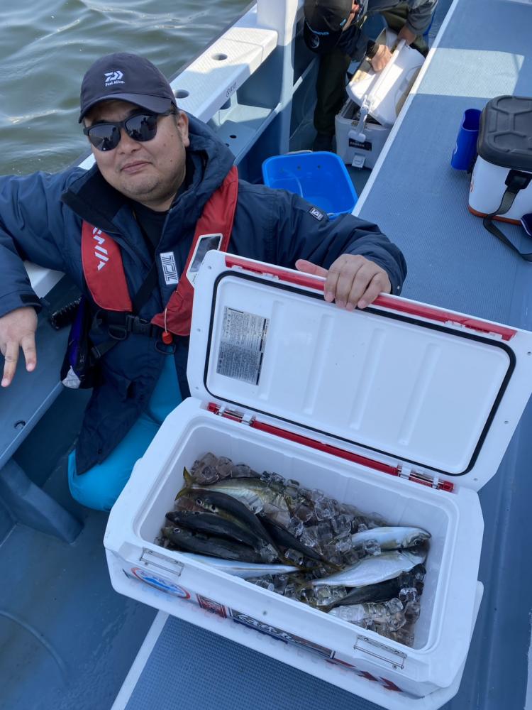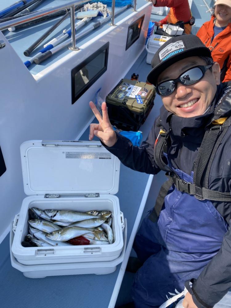 40メートルほどのポイントでスタート。反応モリモリでダブルもあったりして好調にヒット。しばらく好調な時間が続き、潮止まりになるとペースダウン。少し移動し今度はたまーにポツリもサイズアップ。ラッキーな方は40センチ前後も混じり楽しんで頂きました。