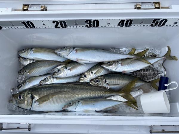 今日もダブルありで好調に釣れ続けて皆さんクーラーいっぱいになりました。外道にマサバ。